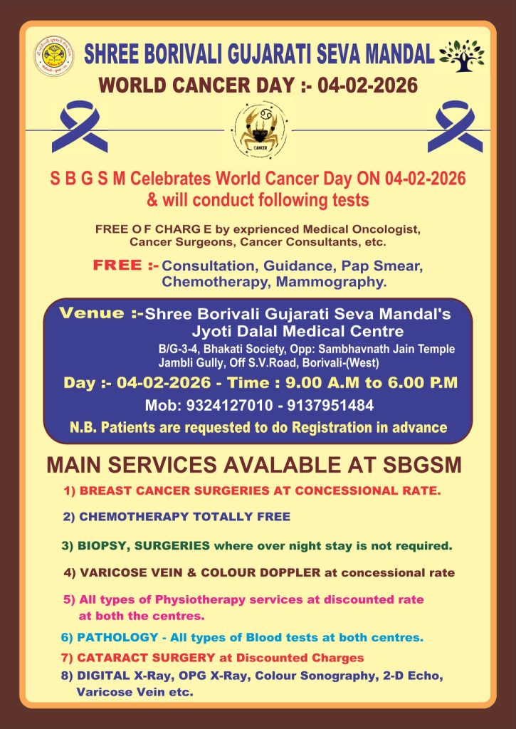 Dedicated to serving the society since its establishment in 1967, Shree Borivali Gujarati Seva Mandal (SBGSM) is a well-known registered social and charity organization. SBGSM started off providing Ayurvedic and Naturopathic treatments in a small garage, with an initial focus on aiding the disadvantaged in the medical field. The organization’s impact and range of services have increased during the last 49 years. With constant commitment and perseverance, SBGSM has developed into a significant resource for the people of Borivali and the neighboring suburbs, becoming an invaluable force in the medical field. This medical charity center is among the best in Borivali, Mumbai. It is one of the Best medical Charitable centre in Borivali Mumbai.